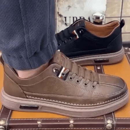 Der Vinny™ Sneaker aus echtem Leder übertrifft die Konkurrenz mit seinem unglaublichen Komfort und seiner Präsenz. Der Sneaker, den jeder erfolgreiche Mann zu jedem Anlass trägt. Fortschrittliche Dämpfungstechnologie, intelligente Sohle und ein Design, das sich millimetergenau an Ihren Fuß anpasst. Sie machen Sie nicht nur 5 Zentimeter größer, sondern geben Ihnen auch mehr Selbstvertrauen und Selbstwertgefühl. Vergessen Sie Wegwerfschuhe. Diese Schuhe sind ein Luxusartikel und bieten außergewöhnlichen Komfort.